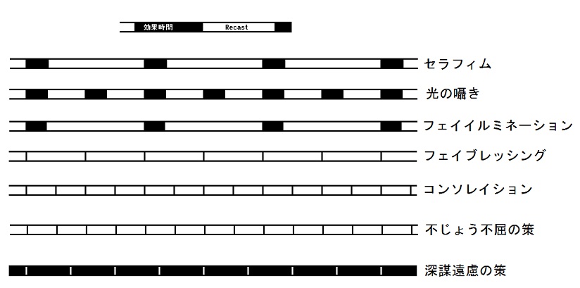 Recast Timeの長いスキルの効果時間とRecast Timeを比較する為の図を以下に掲載します。