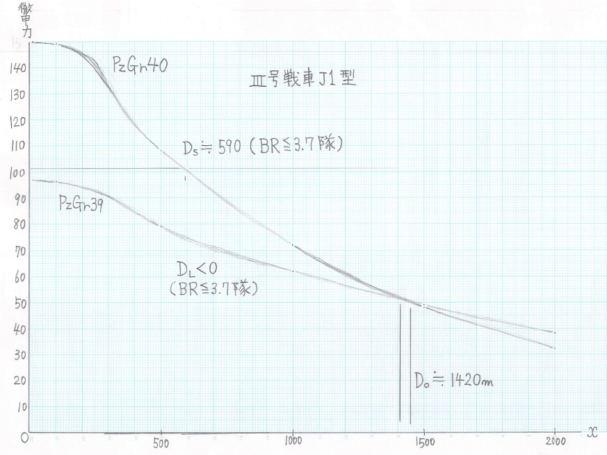 | BR≦3.7隊ではDL<0<D0 and DS≒590[m] | x<D0 | 近距離弾(PzGr 40)を使う |