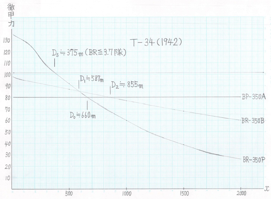 | BR≦3.7隊ではDL<0, DS≒375[m], DM<0<D1 | x<D1 | 近距離弾(BR-350P)の使用が基本 |