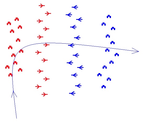 敵の縦列走行陸軍のコース線上に爆弾を集中的に散布する。 |